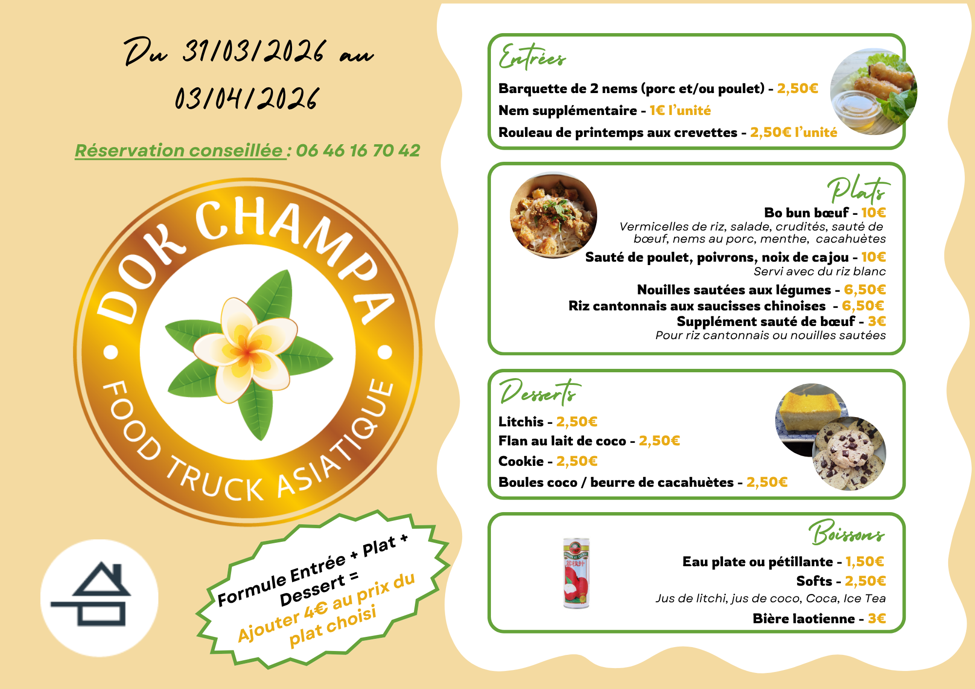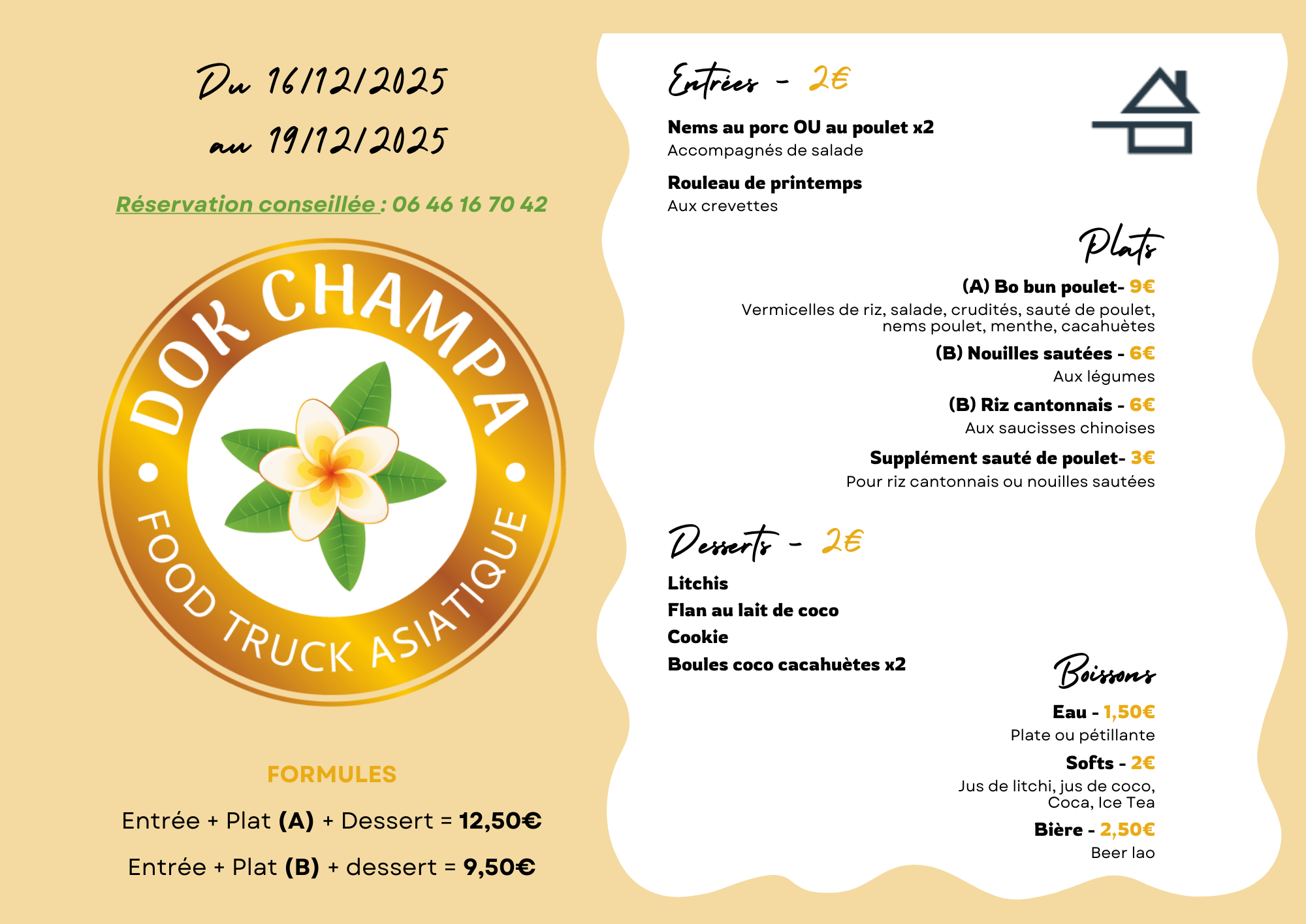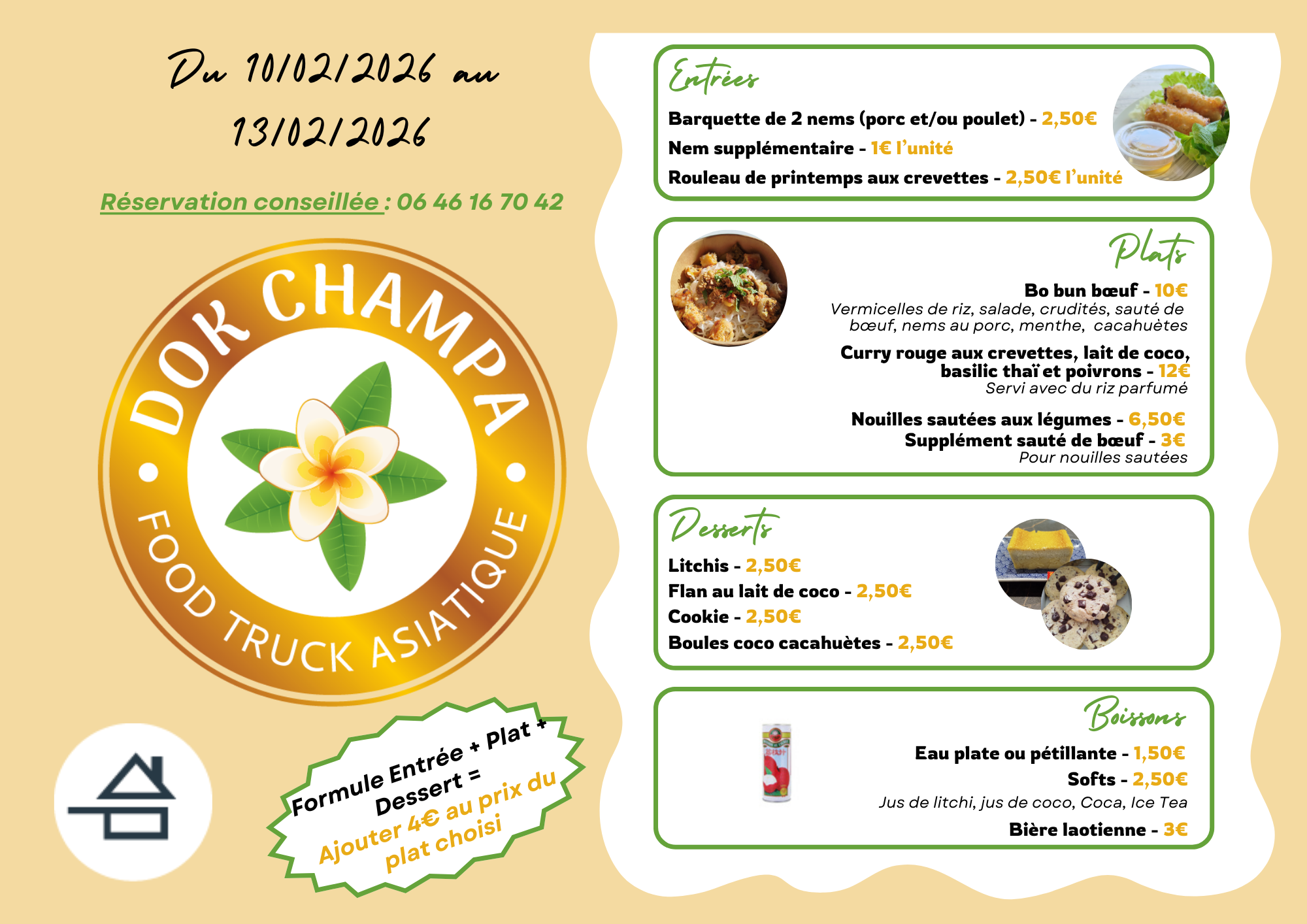 Dok Champa signifie en laotien "fleur de frangipanier". J'ai voulu mettre à l'honneur l'emblème national du Laos, pays d'origine de mes parents. J'ai à cœur de vous faire découvrir la cuisine avec laquelle j'ai grandi, en toute simplicité mais avec beaucoup d'authenticité.